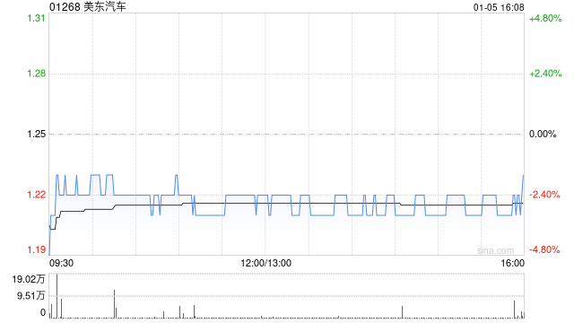 美东汽车获Partners Bay Asia Limited增持150.2万股 每股作价1.22港元