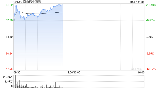 铝业股午前延续上涨趋势 南山铝业国际涨逾13%中国宏桥涨逾4%