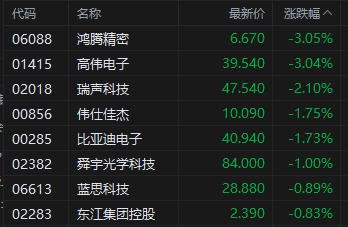港股异动丨苹果概念股继续回调 鸿腾精密、高伟电子跌3%