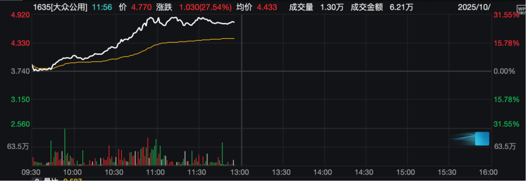 市场热捧宇树、摩尔线程概念!大众公用港股一度爆拉30%,股价创历史新高