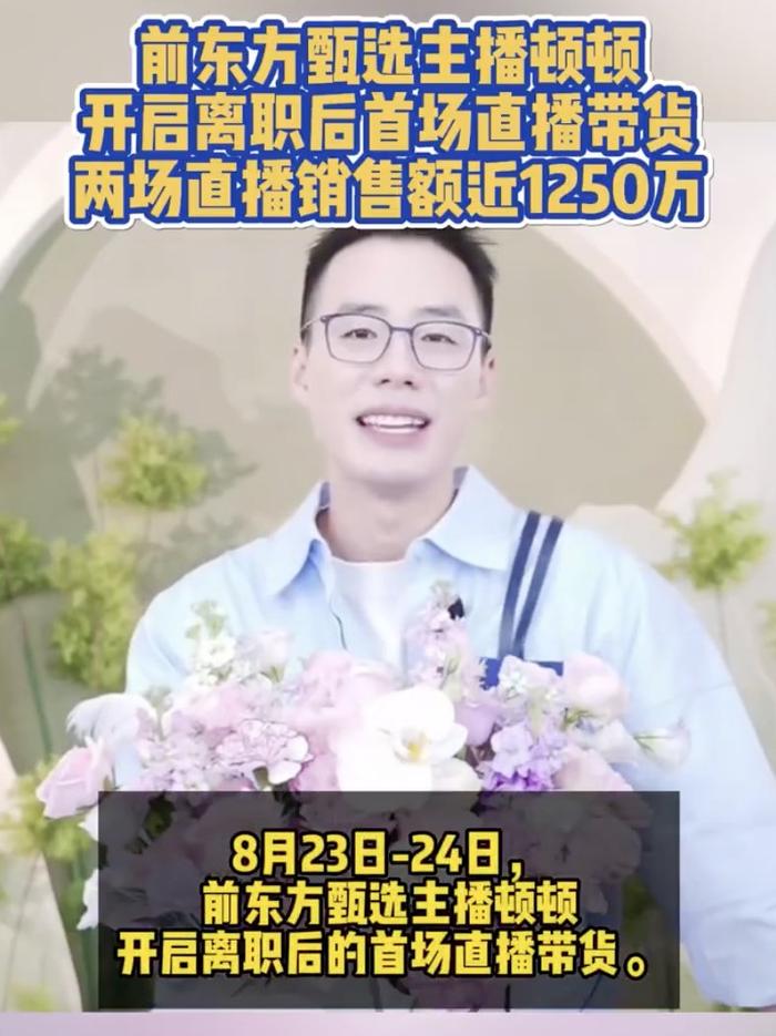 顿顿单飞两场直播销售额近1250万,观看人次超500万