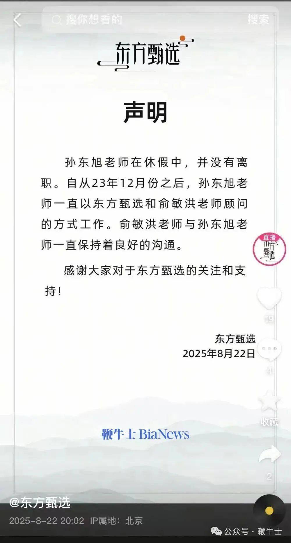 东方甄选披露董宇辉“分手费”终结版,俞敏洪最新发声