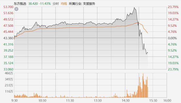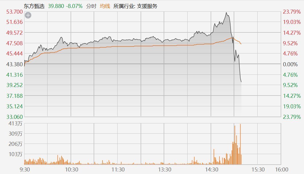 港股东方甄选尾盘高位跳水,现跌幅扩大至超15%,此前一度涨23%