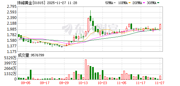 公司股价表现 - 珠峰黄金(01815.HK)盘中股价大幅上涨,涨幅超过9% [2] - 截至发稿时,公司股价上涨9.14%,报2.15港元 [2] - 该时段成交额为1491.95万港元 [2]