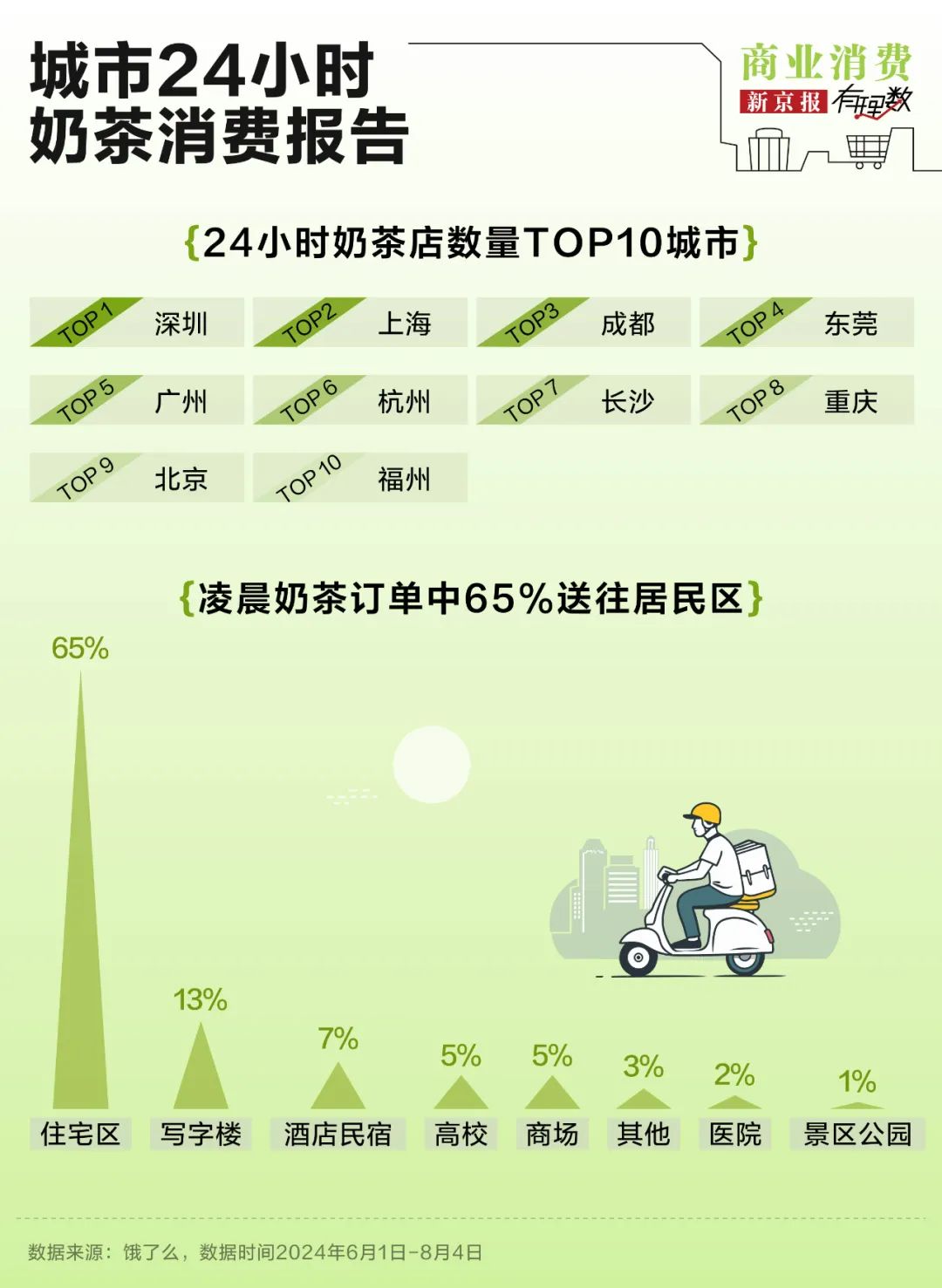 行业趋势:奶茶品牌拓展24小时营业模式 - 蜜雪冰城、霸王茶姬、茶百道、喜茶等至少20家头部茶咖品牌已试水24小时营业门店[1][2] - 24小时营业门店主要集中在广州、深圳、上海、成都、长沙、东莞等夜生活丰富的南方城市[2][18] - 该模式沿袭互联网行业增加用户时长的逻辑 旨在深度绑定一二线城市年轻消费群体[5] 夜间消费需求驱动 - 中国夜间经济市场规模从2016年18.28万亿元增长至2023年48.09万亿元 增幅达163%[12] - 超60%消费发生在夜间 餐饮类"24小时营业"搜索量在2024年1-12月大幅上升[12] - 深夜时段奶茶订单男女比例接近1:1 异地订单比例达9% 显著高于白天时段[6][11] 经营策略与成本效益 - 延长营业时间可最大化利用固定房租成本 已有门店营收数据表现优于未延长门店[18] - 夜间营业主要覆盖居民社区和写字楼区域 有效沉淀有深夜需求的固定客群[3][18] - 需平衡人力成本与营业额产出 男性用户成为夜间时段重点争取人群[11][18] 行业竞争格局变化 - 全国奶茶店数量达41.2万家 平均每10万人拥有29.8家 但较上年净减少近3万家[20] - 行业出现闭店潮 因加盟模式门槛降低导致重复开店 恶性竞争及产品同质化严重[20] - 品牌陷入价格战 9.9元产品泛滥 高端奶茶价格下降导致利润变薄品质难维系[20] 战略转型方向 - 头部品牌逐步退出低价竞争 转向注重门店体验和产品研发(如喜茶减少促销)[24] - 加速出海布局 喜茶、奈雪的茶、蜜雪冰城、霸王茶姬等品牌均已开启国际化[24] - 蜜雪冰城在稳固县域市场后开始向一线城市拓展门店[24]