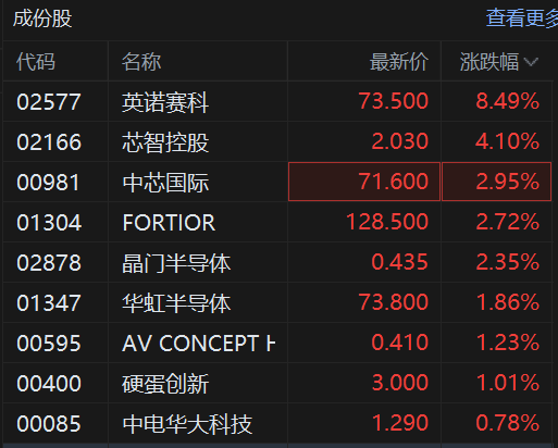 港股异动丨半导体走强 英诺赛科一度大涨超12%大幅领先 中芯国际涨超3%