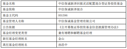 中信保诚新泽混合中信保诚新悦混合增聘金山