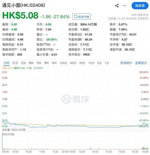 文 | 钱钱 编辑 | 阿景 12月5日,港交所的大屏上,"遇见小面"四个红字格外刺眼。 这个被称为"中式面馆第一股"的品牌,开盘价5港元,比7.04港元的发行价直接跌了近三成。 收盘时36.1亿港元的市值,让不少等着看"资本盛宴"的人有点懵。 毕竟,这可是高瓴资本、海底捞都站台的项目,怎么一上场就"水土不服"? 香颂资本的沈萌说得实在,面馆生意的利润率本就不高,投资者看的是真金白银的价值。 2025年的港股市场对餐饮股本就谨慎,遇见小面顶着"第一股"的帽子,反而成了被放大镜审视的靶子。 从3家小店到465家连锁,扩张的油门踩到底 2014年,广州体育东横街的街边,三个85后华南理工毕业生支起了第一家遇见小面。 这数据,放在前几年的资本圈,妥妥的"香饽饽"。 但扩张这事儿,就像开车猛踩油门,快感过后容易出问题。 2022到2024年,遇见小面悄悄关了30家店,关店率8%。 有些店开的时候风风火火,关的时候悄无声息。 现在手里465家店,未来三年还计划每年新开150到230家,这步子迈得,有点让人捏把汗。 单店每天少卖888块,低价换流量玩不转了 今年上半年,遇见小面直营餐厅单店日均销售额11805元,看着不少 ...