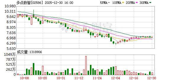 格隆汇12月31日丨多点数智(02586.HK)发布公告,2025年12月31日耗资244.84万港元回购34.01万股,回 购价格每股7.06-7.33港元。 ...