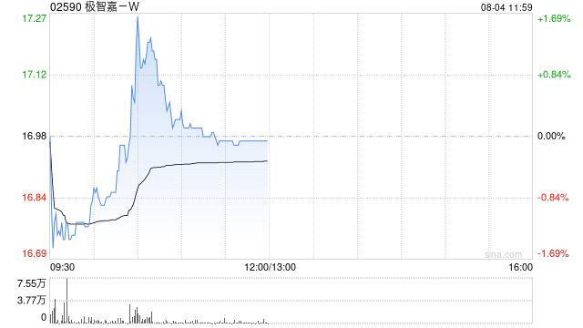 极智嘉-W盘中涨超4% 公司具身智能领域 研发机械手及通用机器人等产品