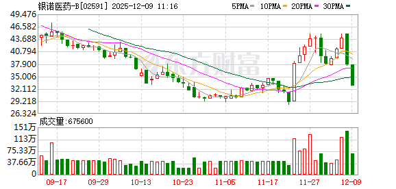 公司股价表现 - 银诺医药-B(02591.HK)在获纳入港股通后股价大幅下跌,昨日跌幅超过14%,今日早盘继续下挫,累计跌幅达到25% [2] - 截至发稿时,公司股价下跌12.73%,报32.9港元,成交额为1969.26万港元 [2]