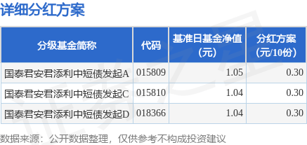基金分红:国泰君安君添利中短债发起基金8月28日分红