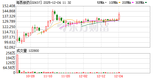 港股异动 | 海西新药(02637)一度涨超7% 总市值现突破110亿港元