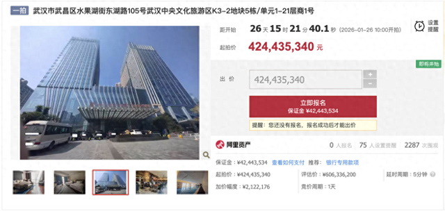 武汉富力万达嘉华酒店将被拍卖,起拍价约4.24亿元