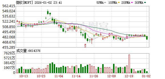 微软一度下跌1.7%,盘中跌破200日移动均线