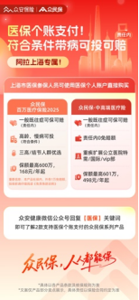 众安在线推动“医保+商保”深度融合 “众民保”系列纳入上海医保个账支付范围