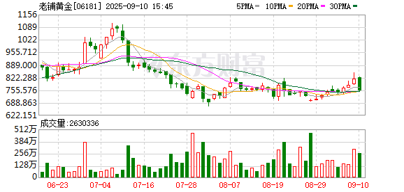 股价表现 - 港股老铺黄金(06181 HK)股价于9月10日尾盘出现大幅下跌 跌幅达7.83% 报收753港元 [2] - 当日成交额达19.2亿港元 [2] - 盘中最大跌幅接近9% [2]