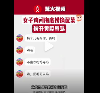 女子点外卖想换配菜被开黄腔辱骂,海底捞回应