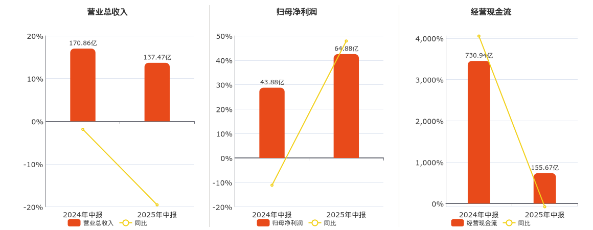 中国银河(601881.SH):2025年中报净利润为64.88亿元、同比较去年同期上涨47.86%