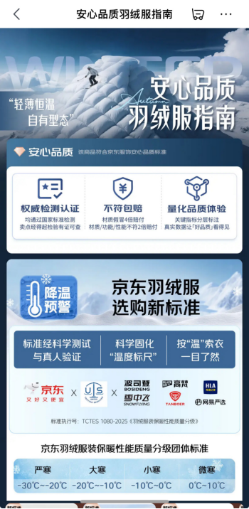 填补行业空白 京东服饰携手中联品检发布国内首个羽绒服装保暖性能团体标准