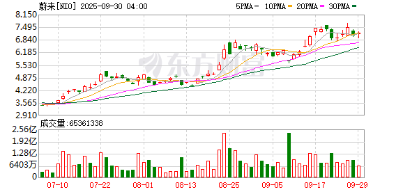 蔚来(NIO.US)涨6% 9月第四周新能源车销量环比实现翻倍