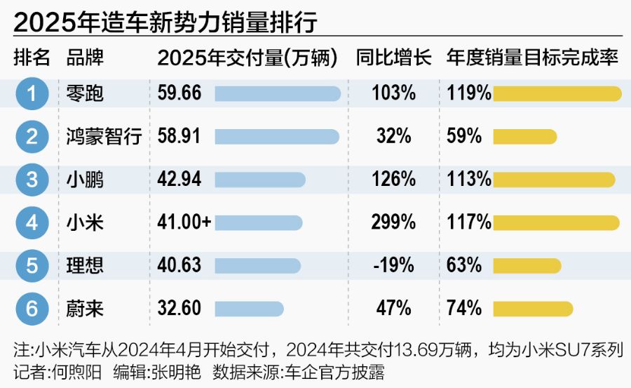 投资评级 - 投资评级为“买入”,且评级为“维持” [6] 核心观点 - 2025年12月公司共交付新车37,508台,同比+2.2%,环比+2.1% [2][4] - 2025年全年公司累计交付新车共42.9万台,同比+125.9% [2][4] - 智能驾驶持续领先,随着渠道变革和营销体系加强,叠加强势新车周期开启,公司销量有望稳步提升 [2] - 规模提升、平台和技术降本效果将进一步体现,叠加软件盈利的商业模式拓展以及出海持续增长,公司未来盈利具备较大弹性 [2][6] - AI定义汽车,智驾进展持续领先构筑AI时代核心护城河,智驾VLA升级有望带来飞跃,加速Robotaxi落地扩展智驾变现方式,下一代机器人发布在即,有望迎来新催化,叠加包括飞行汽车在内的三大AI体系,2026年迎来量产,AI应用全面起势 [6] - 预计公司2025-2026年收入约为751/1121亿元,对应PS 1.8/1.2X [6] 月度及年度销量表现 - 2025年12月公司共交付新车37,508台,同比+2.2%,环比+2.1% [2][4][6] - 2025年第四季度交付11.6万辆,同比+27.0% [6] - 2025年全年公司累计交付新车共42.9万台,同比+125.9% [2][4][6] 具体车型表现 - 全新X9增程上市并快速开启交付,12月小鹏X9交付5,424台,创车型历史单月最高交付纪录,环比+68%,同比+289% [6] 新车与产品规划 - MONA M03和P7+开启公司新车周期 [2] - 2026年,小鹏即将举办新年第一场发布会,发布2026款小鹏P7+和小鹏G7车型,开启“一车双能” [6] - 2025年公司处于新车大年,多款新车预期上市持续增强销量周期 [6] 海外市场进展 - 2025年全年小鹏汽车海外市场交付量达4.5万辆,同比+96% [6] - 截至2025年12月底小鹏汽车已在全球布局60个国家和地区 [6] - 12月正式启动马来西亚本地化生产项目 [6] 业绩指引与实际对比 - 根据2025Q4业绩指引,公司预期交付量12.5-13.2万辆,同比增长36.6%至44.3%,预期收入215-230亿元,同比增长33.5%至42.8% [6] - 2025Q4由于行业需求下滑,小鹏实际交付11.6万辆,整体略低于前期指引 [6]