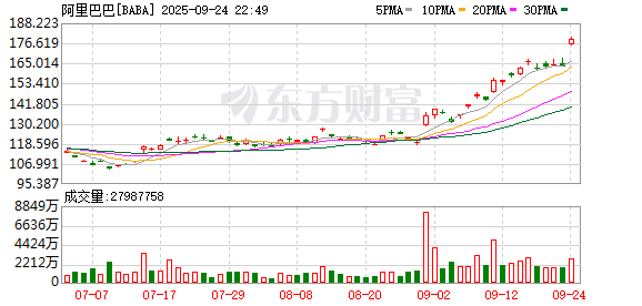 阿里巴巴美股涨幅扩大至10%,创2021年8月以来新高
