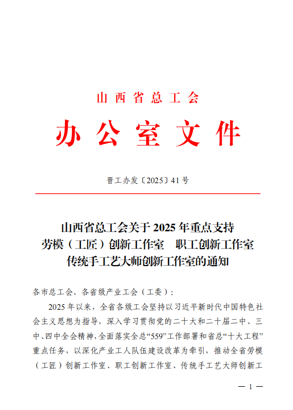 公司两家职工创新工作室入选省级重点支持名单