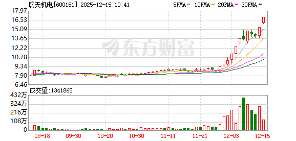 航天机电再度涨停,12个交易日内录得7个涨停,累计涨幅为100.47%,累计换手率为185.33%。截至 9:46,该股今日成交量1.29亿股,成交金额21.02亿元,换手率8.98%。最新A股总市值达242.96亿元。 证券时报·数据宝统计,两融数据来看,该股最新(12月12日)两融余额为11.35亿元,其中,融资余额 11.28亿元,较前一个交易日增加2358.18万元,环比增长2.14%,近12日累计增加4.06亿元,环比增长 56.24%。 龙虎榜数据显示,该股因连续三个交易日内,涨幅偏离值累计达20%、日换手率达20%、日涨幅偏离值 达7%、日振幅值达15%上榜龙虎榜3次,买卖居前营业部中,沪股通累计净买入2647.45万元,营业部席 位合计净买入7242.74万元。 据天眼查APP显示,上海航天汽车机电股份有限公司成立于1998年05月28日,注册资本143425.2287万 人民币。(数据宝) 近日该股表现 | 日期 | 当日涨跌幅(%) | 换手率(%) | 主力资金净流入(万元) | | --- | --- | --- | --- | | 2025.12.12 | 10.00 | 20.47 ...