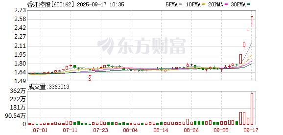 四连板香江控股:近期股价涨幅较大 涨幅明显偏离同行业及上证指数
