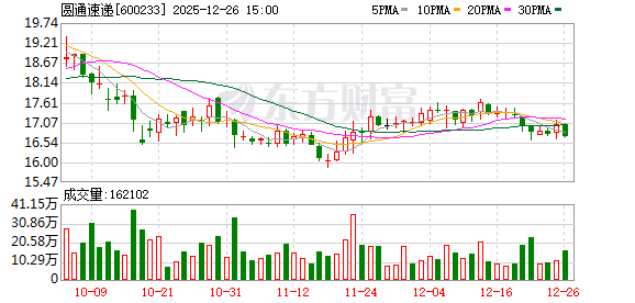 12月26日,圆通速递盘中下跌2.06%,截至13:47,报16.66元/股,成交1.75亿元,换手率0.30%,总市值 570.20亿元。 资金流向方面,主力资金净流入176.16万元,特大单买入231.34万元,占比1.32%,卖出235.06万元,占 比1.34%;大单买入1173.22万元,占比6.71%,卖出993.34万元,占比5.68%。 分红方面,圆通速递A股上市后累计派现62.00亿元。近三年,累计派现32.88亿元。 机构持仓方面,截止2025年9月30日,圆通速递十大流通股东中,香港中央结算有限公司位居第七大流 通股东,持股5698.93万股,相比上期增加156.34万股。华泰柏瑞沪深300ETF(510300)位居第十大流 通股东,持股2928.79万股,相比上期减少145.52万股。 责任编辑:小浪快报 资料显示,圆通速递股份有限公司位于上海市青浦区华新镇新协路28号,成立日期1992年12月22日,上 市日期2000年6月8日,公司主营业务涉及综合性快递物流服务。主营业务收入构成为:国内时效产品 89.93%,货代服务2.91%,航空业务2.47%,其他1.75%,其他(补充)1. ...