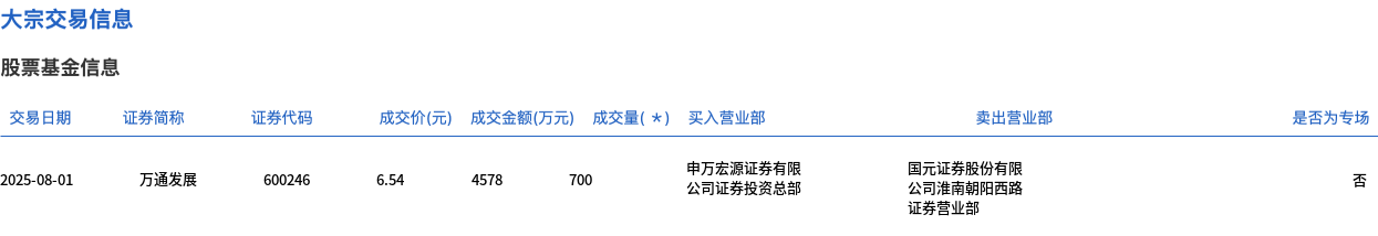 万通发展今日大宗交易折价成交700万股,成交额4578万元