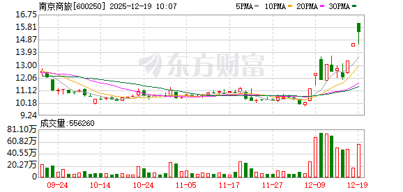 近日该股表现 | 日期 | 当日涨跌幅(%) | 换手率(%) | 主力资金净流入(万元) | | --- | --- | --- | --- | | 2025.12.18 | 10.01 | 5.24 | 13055.51 | | 2025.12.17 | 10.02 | 15.54 | 15877.48 | | 2025.12.16 | -5.25 | 15.13 | -5657.13 | | 2025.12.15 | 2.00 | 16.15 | -643.22 | | 2025.12.12 | -4.29 | 22.62 | -4056.64 | | 2025.12.11 | 10.03 | 23.52 | 12130.11 | | 2025.12.10 | -3.96 | 24.24 | -9672.31 | | 2025.12.09 | 9.96 | 21.94 | 10835.61 | | 2025.12.08 | 9.98 | 8.71 | 10755.76 | | 2025.12.05 | 1.89 | 2.27 | -33.62 | 南京商旅盘中涨停,已连收3个涨停板,截至9:26,该股报 ...