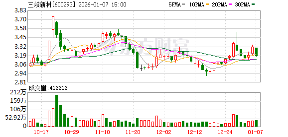 三峡新材(600293)披露获得政府补助5000万元,1月7日股价下跌3.93%