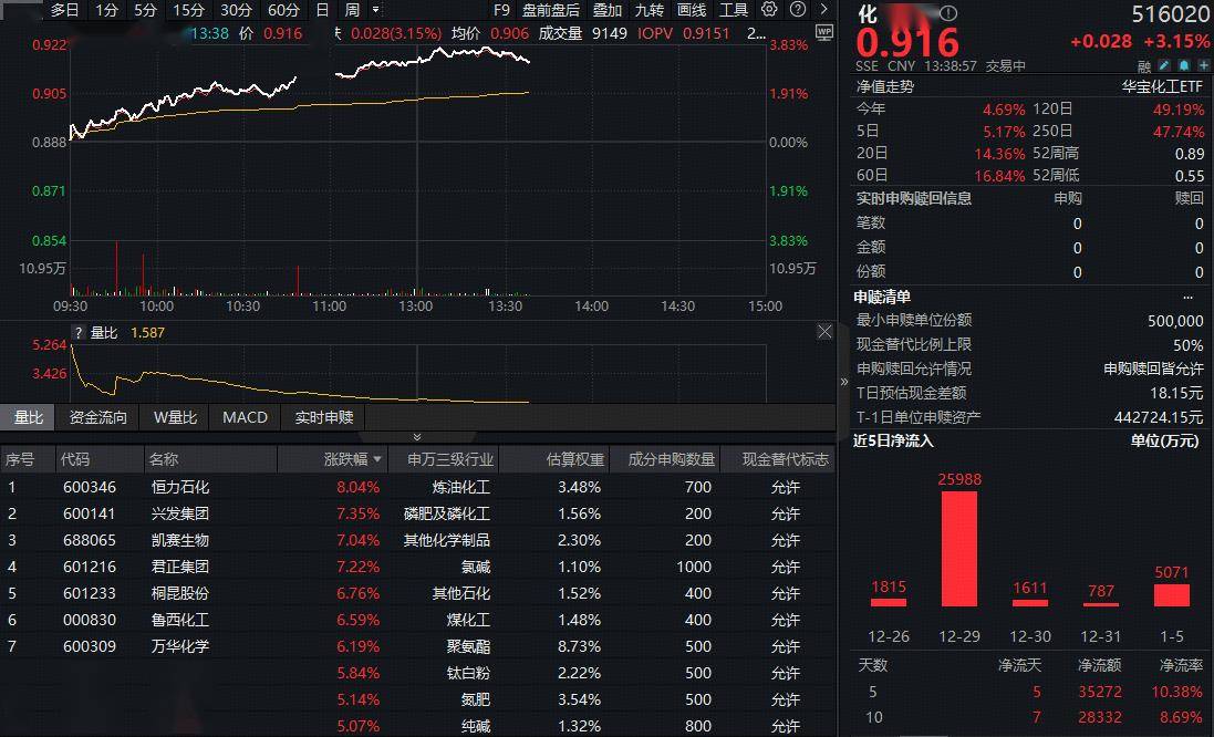 PVC价格大涨!化工板块暴力拉升,化工ETF(516020)摸高3.83%,近5日吸金超3.5亿元!