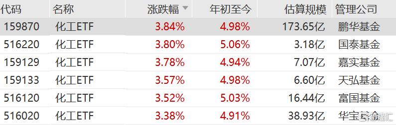 化工板块热度升温,化工ETF、化工龙头ETF、化工ETF嘉实、化工ETF天弘、化工50ETF涨超3%