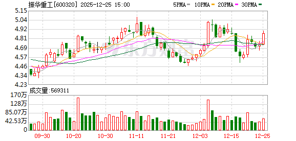 每经AI快讯,振华重工(SH 600320,收盘价:4.87元)12月25日晚间发布公告称,公司第九届第十八 次董事会会议于2025年12月25日以现场和通讯相结合的方式召开。会议审议了《关于审议修订 <公司投 资者关系管理办法> 的议案》等文件。 每经头条(nbdtoutiao)——微信聊天遭老板监视,杀毒软件"失明",员工隐私被系统性采集!软件商 公开售卖"监控神器",称已服务多家企业 (记者 贾运可) 2025年1至6月份,振华重工的营业收入构成为:港口机械占比61.7%,海上重型装备占比21.05%,钢结 构占比9.37%,船舶运输占比5.93%,租赁收入占比1.14%。 截至发稿,振华重工市值为257亿元。 ...