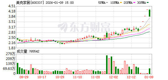 南方财经1月9日电,有着"高端家居第一股"之称的美克家居(600337.SH)盘中大幅跳水跌停,截至午 盘报3.84元/股,跌停板封单达43.99万手,成为今日早盘市场中唯一跌停的个股。而此前(1月5日-8 日),该股连续4个交易日涨停。消息面上,昨日晚间,美克家居发布2025年度预亏公告显示,公司目 前处于亏损状态,2025年度公司预计利润总额、归属于上市公司股东的净利润或者归属于上市公司股东 的扣除非经常性损益的净利润为负值。这意味着,如无意外,美克家居业绩将录得连续四年亏损。对 此,美克家居证券事务部相关负责人向21快讯记者表示,二级市场的波动受多重因素影响,当前公司无 应披而未披的事项,公司对万德溙收购一事还处于早期阶段,后续AI算力领域相关规划以公告为准。 家居业作为房地产最直接的下游行业,公司业绩连亏也与此密切相关。目前公司也在采取降本增效举 措,包括关闭低效门店,开拓大众业务等。查看原文:4连板后跌停,"高端家居第一股"陷4年连亏,公 司回应跨界进展10分钟前 ...