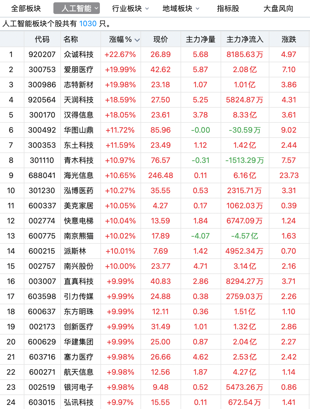 1月8日,人工智能板块延续强势表现,多只个股强势上涨。 截至当日午间收盘,爱朋医疗(300753)(300753)、志特新材(300986)(300986)、美克家居(600337)(600337)、快意电梯(002774) (002774)、南京熊猫(600775)(600775)、派斯林(600215)(600215)、南兴股份(002757)(002757)、直真科技(003007)(003007)、引 力传媒(603598)(603598)、创新医疗(002173)(002173)、银河电子(002519)(002519)、弘讯科技(603015)(603015)、远东股份 (600869)(600869)、岩山科技(002195)(002195)等21只个股涨停。 其中,志特新材、美克家居、快意电梯、南京熊猫、引力传媒、创新医疗、银河电子、岩山科技等8只个股实现"4连板",远东股份"3连板"。 万联证券投资顾问屈放对《证券日报》记者表示,我国拥有支撑人工智能发展的坚实基础:广阔的应用场景为技术落地提供丰富土壤,大规模建设的算 力、电力等基础设施提供了硬件保障,近2000万规模的科学家与工程师队伍构成 ...