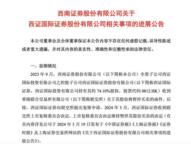 西南证券香港孙公司西证国际证券将于月底摘牌退市,十年亏超10亿港元
