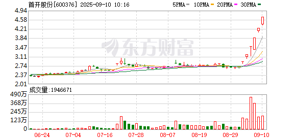 股价表现 - 今日盘中强势涨停 股价报4.68元 涨幅10.12% 成交额达8.90亿元[1] - 连续第6个交易日涨停 区间涨幅超77% 成为当前市场最强连板股[1] - 从7月21日收盘至今日累计涨幅高达82.81% 盘中触及4.68元创阶段新高[3] 统计信息 - 起始价2.56元 终止价4.68元 均价3.15元 最高价4.68元 最低价2.60元 振幅81.25%[4] - 涨跌幅+82.81% 大盘比7.81% 行业比9.34%[4] - 换手率137.58% 总量3549.08万股 金额111.62亿元[4] - 阳线15根 平线9根 阴线14根[4] 概念炒作 - 机器人概念:通过北京首开盈信投资管理有限公司间接持有宇树科技0.85%股份 宇树科技将在四季度提交IPO申请 成为人形机器人第一股的预期推动概念股活跃[4] - 房地产政策预期:作为房地产龙头企业 受益于近期房地产政策边际放松的市场预期[5] - 城市更新概念:在北京核心区域拥有丰富的土地储备和项目资源 在城市更新、棚户区改造等业务领域具备优势[5] 基本面情况 - 2025年上半年实现归属于上市公司股东的净利润-18.39亿元[5] - 营收同比增长105% 但盈利能力有待改善[5]