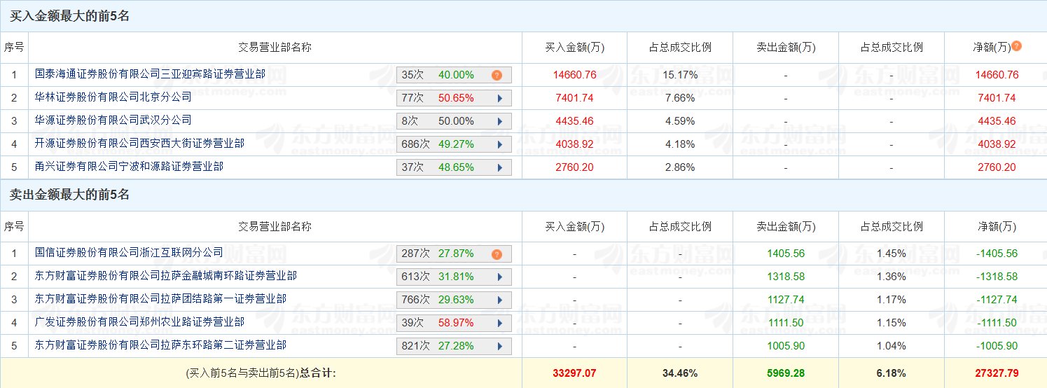 龙虎榜丨红豆股份5天4板,佛山系买入1.47亿元