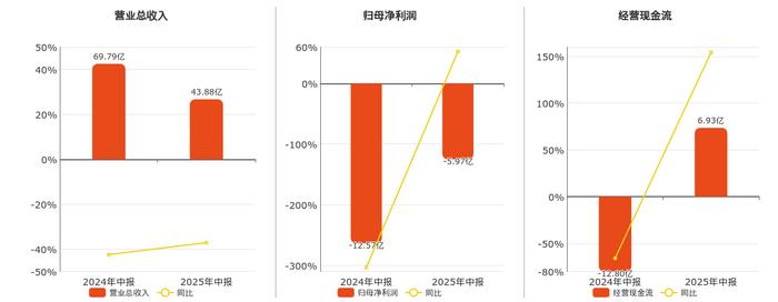 财务表现 - 2025上半年营业总收入43.88亿元 同比下降37.13% [1] - 归属母公司股东净亏损5.97亿元 较上年同期亏损减少6.61亿元 [1] - 基本每股收益为-0.3185元 [1]