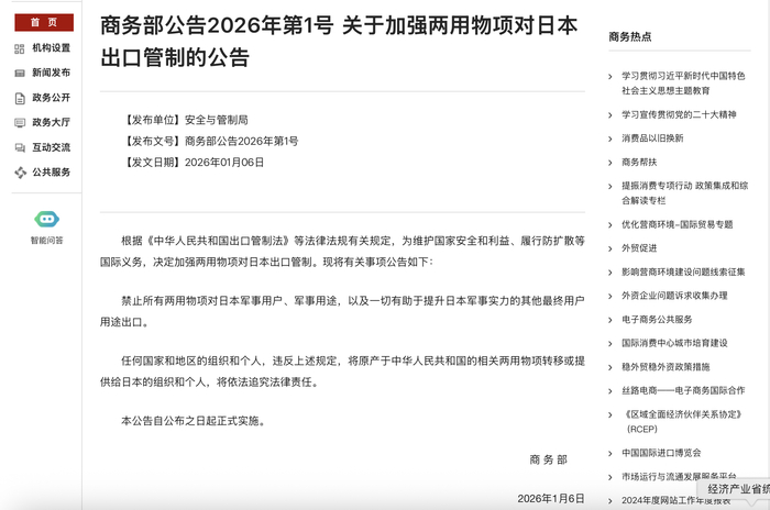 中国对日实施两用物项出口管制,这些行业将受影响