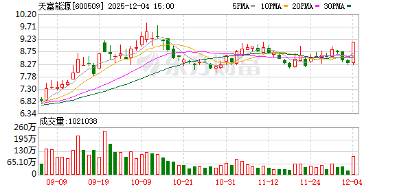 股价与交易异动 - 天富能源股价于12月4日涨停,全天换手率达7.43%,成交额为9.06亿元,振幅为10.96% [2] - 因日涨幅偏离值达10.08%登上龙虎榜,前五大买卖营业部合计成交1.89亿元,合计净买入1.01亿元 [2] - 当日主力资金净流入2.59亿元,其中特大单净流入2.31亿元,大单资金净流入2803.88万元,近5日主力资金净流入1.97亿元 [2] 龙虎榜交易明细 - 沪股通专用席位为第二大买入营业部,买入金额为3758.01万元,净买入3758.01万元 [2][3] - 买入前五营业部合计买入1.45亿元,其中买一为中信证券上海漕溪北路营业部,买入4101.92万元 [3] - 卖出前五营业部合计卖出4381.06万元,其中卖一为大通证券新余仙来中大道营业部,卖出1560.61万元 [3][4] 融资融券情况 - 截至12月3日,公司两融余额为9.29亿元,其中融资余额9.24亿元,融券余额457.22万元 [2] - 近5日融资余额增加5339.34万元,增幅为6.13%,融券余额减少13.92万元,降幅为2.95% [2] 公司近期财务表现 - 根据10月21日发布的三季报,前三季度公司实现营业收入59.29亿元,同比下降12.10% [3] - 前三季度实现净利润3.74亿元,同比下降24.23% [3]