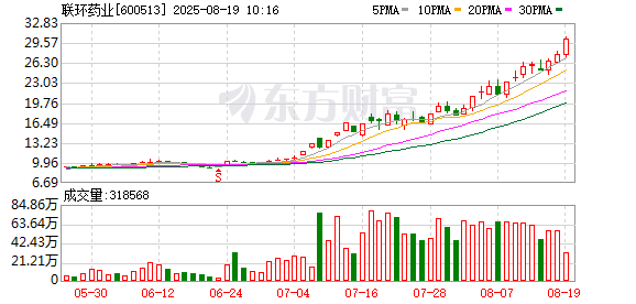 股价表现 - 联环药业股价再创历史新高 近一个月累计有10个交易日刷新历史纪录 [2] - 截至09:40股价上涨2.66%至28.52元 成交金额3.15亿元 换手率3.96% [2] - 最新A股总市值达81.41亿元 流通市值81.41亿元 [2] 行业表现 - 医药生物行业整体涨幅1.44% 行业内438只个股上涨 [2] - 福瑞股份、济民健康等3只个股涨停 [2] - 48只个股下跌 南模生物跌4.23% 皓宸医疗跌4.01% 广誉远跌3.62% [2] 财务数据 - 一季度营业收入6.28亿元 同比增长18.78% [2] - 一季度净利润2305.96万元 同比下降29.15% [2] - 基本每股收益0.0800元 加权平均净资产收益率1.64% [2] 业绩预告 - 预计上半年净利润亏损4500万元至3800万元 [2] - 同比变动区间为-171.56%至-160.42% [2]