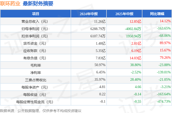 联环药业股价下跌5.1% 上半年亏损4003万元