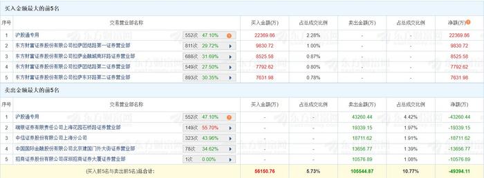 股价表现与交易数据 - 公司股价单日上涨1.2% 换手率达18.81% 成交金额为97.97亿元[1] - 龙虎榜买入总额5.62亿元 卖出总额10.55亿元 整体呈现净卖出状态 净卖出金额4.94亿元[1] 外资机构交易动向 - 沪股通专用席位买入2.24亿元 卖出4.33亿元 净卖出2.09亿元 占总成交比例2.28%[1] - 瑞银证券上海花园石桥路营业部卖出1.93亿元 占总成交比例1.97%[1] 量化资金交易特征 - 量化基金席位集中出现在卖方前列 合计卖出5.17亿元[1] - 东方财富证券拉萨地区营业部占据买入前五名中四席 合计买入3.38亿元 平均成交成功率29%-31%[1] 机构席位交易分布 - 中信证券上海分公司卖出1.87亿元 占总成交比例1.91%[1] - 中国国际金融北京建国门外大街营业部卖出1.37亿元 占总成交比例1.39%[1] - 招商证券深圳招商证券大厦营业部卖出1.06亿元 占总成交比例1.08%[1]