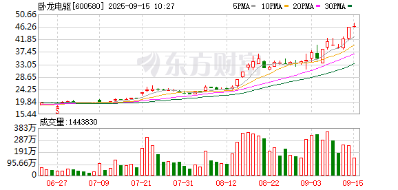 卧龙电驱持续走强,股价再创新高