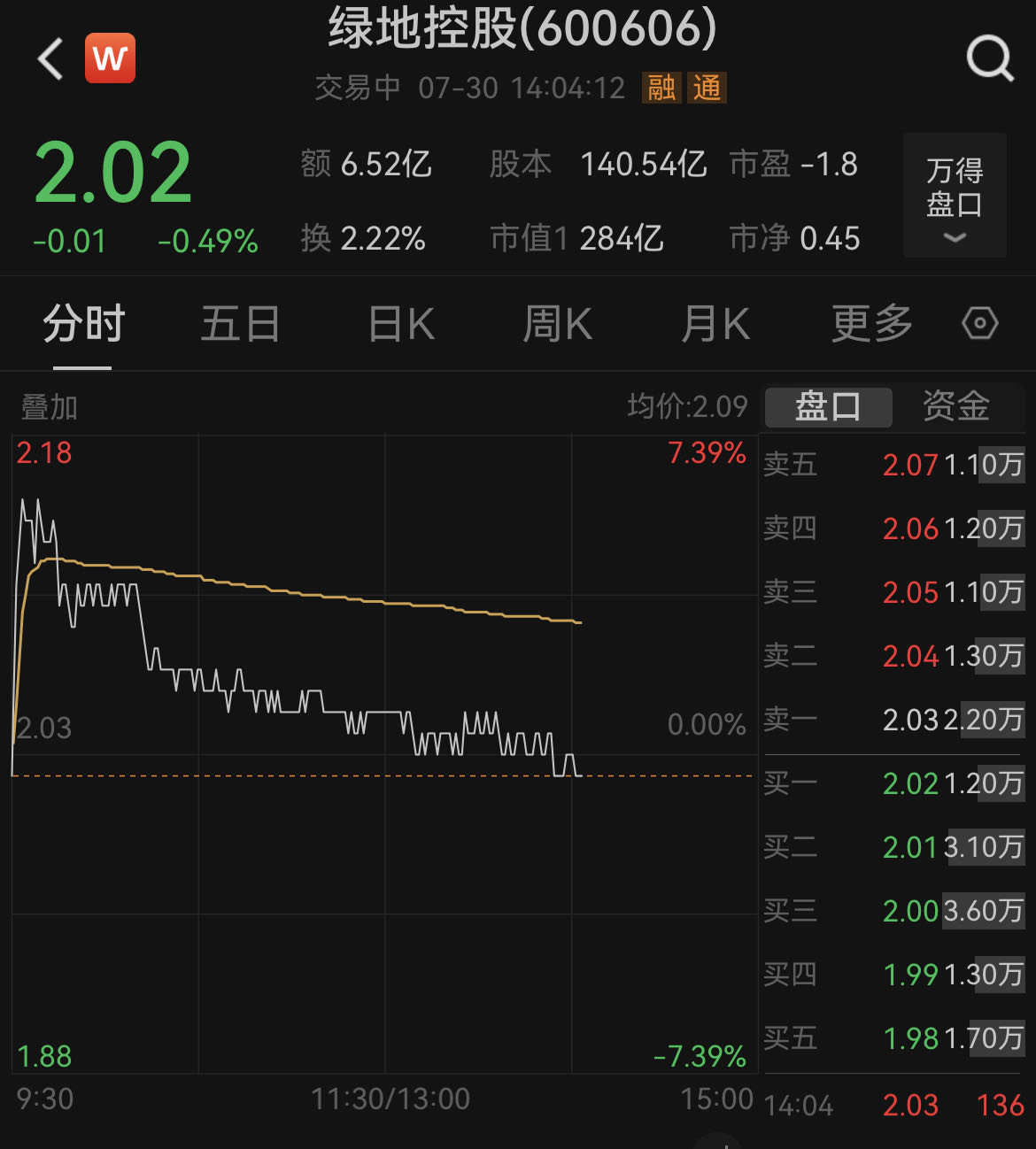 公司高管动态 - 网络自媒体称绿地控股执行总裁陈军疑似失联 公司澄清此为不实信息且陈军因个人家庭原因申请事假但仍在正常履职[2] - 陈军为绿地控股资深高管 长期在体系内工作 现任执行总裁兼绿地大基建集团总裁及绿地香港董事局主席等职务[2] - 今年5月董事会决议公告显示陈军继续被聘任为执行总裁 任期与董事会一致[3] 二级市场表现 - 7月30日公司股价一度上涨7.39% 但随后快速震荡回落[3] - 当日收盘价微跌0.49% 报收2.02元/股[3]